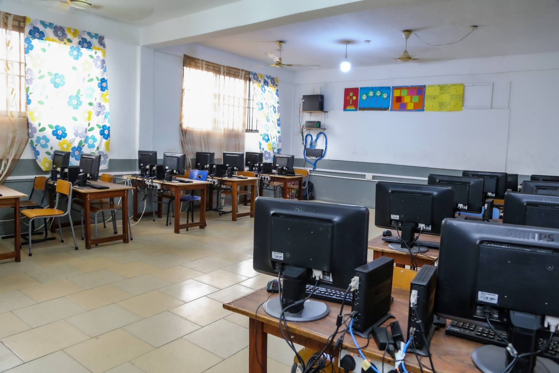 RecellGhana Computerlabs is a solution that enables schools to access high-quality computers, internet, and maintenance services at an affordable price. Each Computerlab is equipped with 21 desktop stations, a server with UPS, and a high-speed internet connection. The Computerlab is designed to support the teaching and learning of the National ICT Curriculum, which covers topics such as word processing, spreadsheet, presentation, internet, and coding.