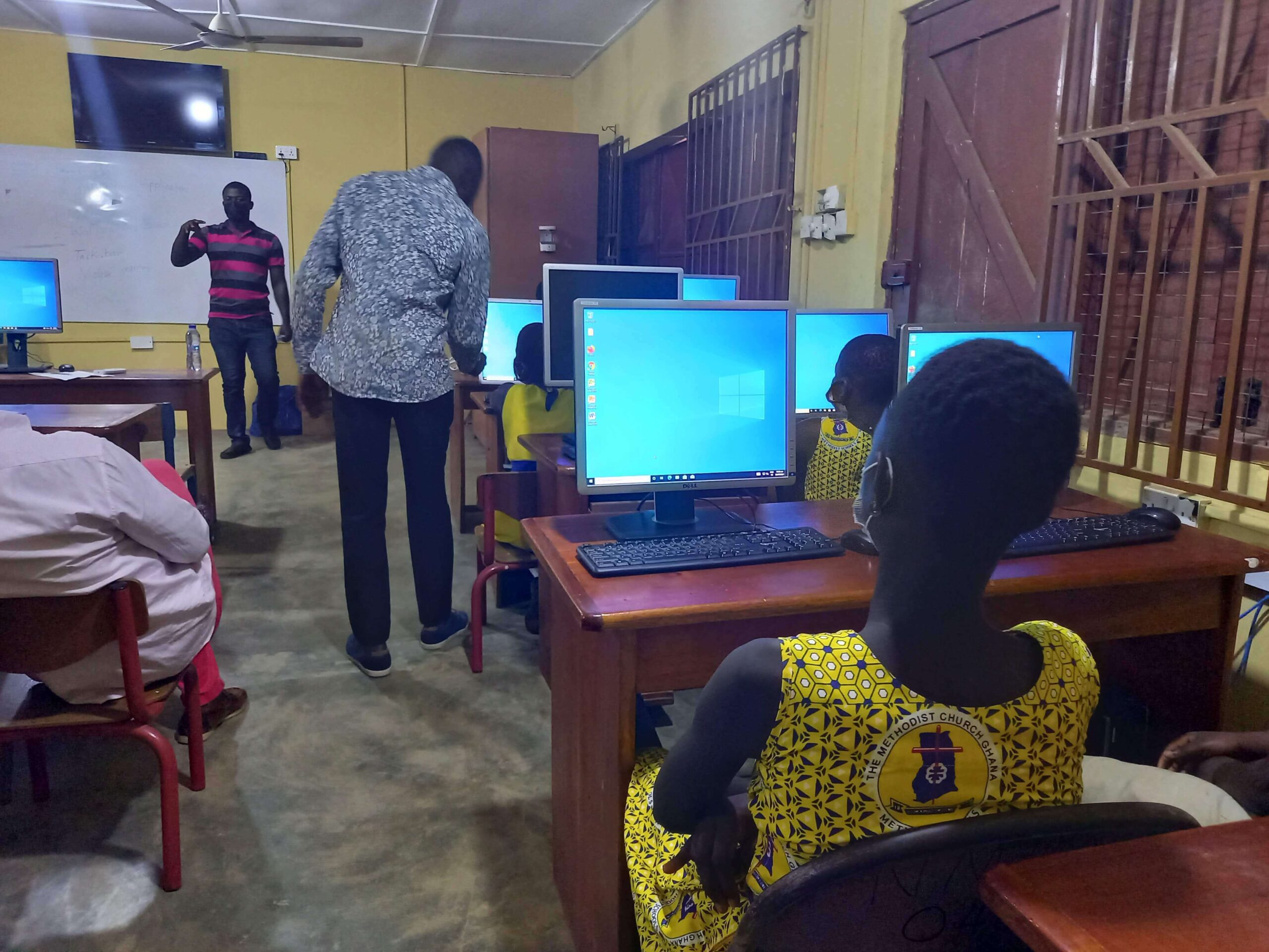 The school agreed to collaborate with us and the MP under our Computerlab-as-a-Service deal, which means that they don’t have to purchase any computers or software from us. We provided them with one of our Computerlabs and will take care of everything for five years. The school only had to make a slight modification to their electrical network to ensure that the Computerlab had its own power supply. We set up our first Computerlab at the Methodist Basic School in Nsawam on August 31st, 2021, and trained the teachers on how to use it. Our Computerlab has all the essential software needed to teach the National ICT Curriculum of Ghana. As ICT coordinator Joseph Mac Forson said, ‘It is a true blessing that I can now use computers to teach ICT, some children have not even seen a real computer in their life yet’. The best part for us was seeing the children enjoy their first lessons with our computers. They were so excited and curious.